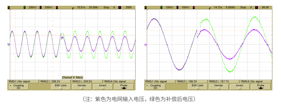 配电台区统一电能质量调节器对于电压补偿具有毫秒级别的响应,对于输入电压的跌落和闪变不会对运行中的负载产生任何影响。