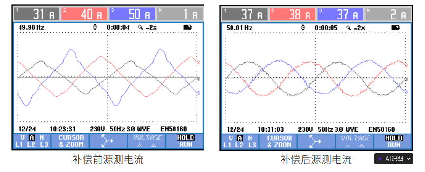 配电台区统一电能质量调节器能够快速的补偿由于负载不平衡所产生的负序电流,始终保证流入电网的三相电流平衡。